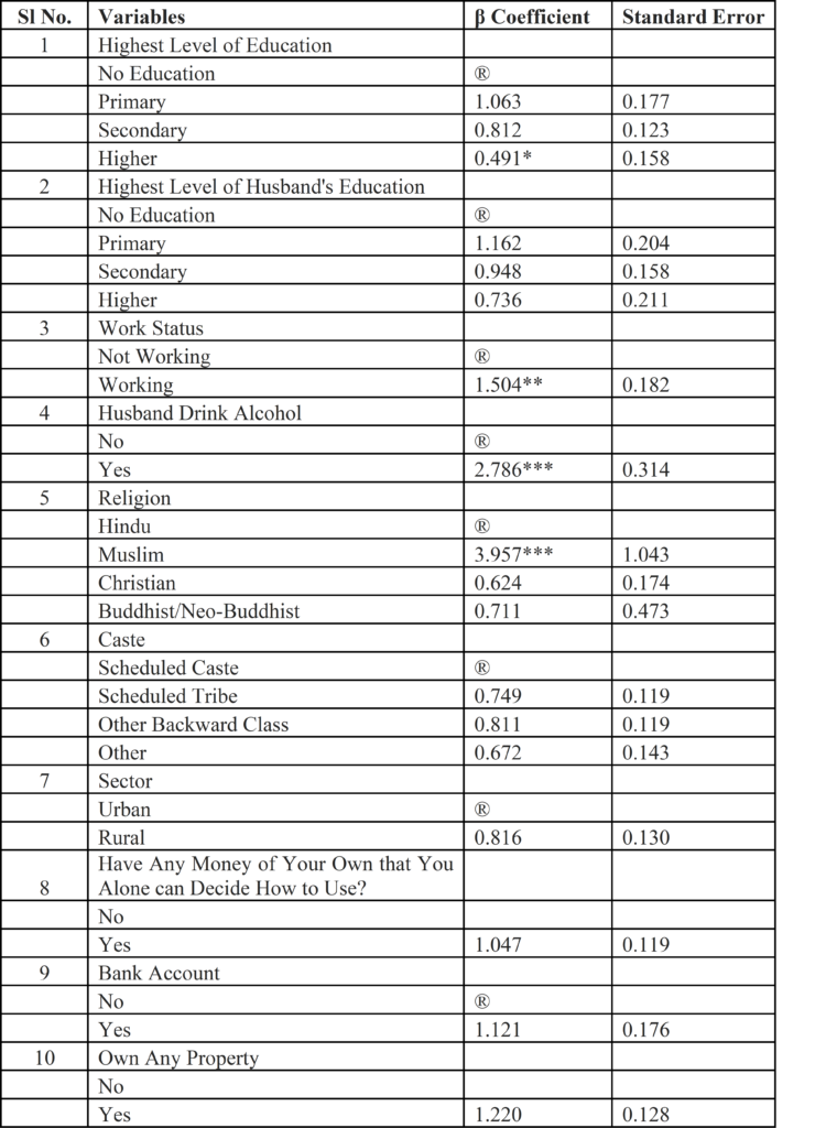 Table 1: Model of Determinants of Total Violence against Women in Assam