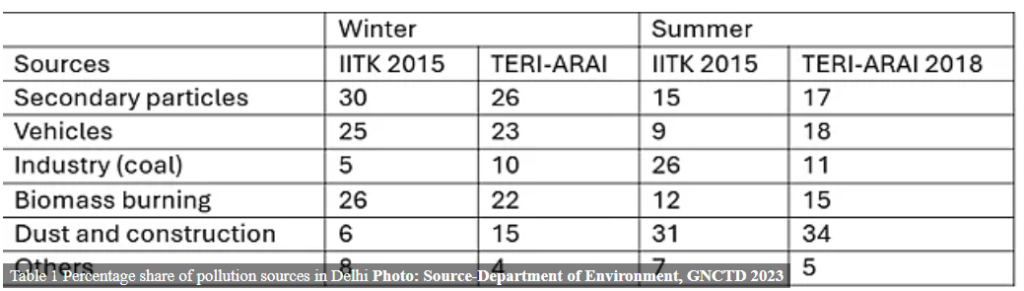 To curb peak pollution during periods like winter and Diwali, authorities impose measures including odd–even traffic rules, construction bans to control dust, and schemes to discourage farm residue burning through in-situ management. Despite these efforts, biomass burning remains a major concern, peaking at around 26 per cent in winter and 22 per cent in summer, even under strict regulations. (Table 1).