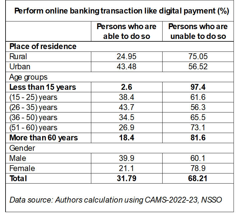 By the highest expenditure quintile (Q5), 61.91 per cent of urban individuals are able to use digital banking services — a figure that dwarfs the 37.71 per cent adoption in rural areas. But even in Q5 — where individuals theoretically have better access to smartphones, internet connectivity, and bank accounts — nearly two-thirds of rural residents are still not able to use digital banking.