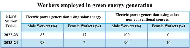 Employment within the renewable energy sector has grown as well. According to Periodic Labour Force Survey (PLFS) data, between 2022-23 and 2023-24, the number of individuals engaged in electric power generation using solar energy increased by 86 per cent and those engaged in generation using other non-conventional sources (including wind energy) increased by 206 per cent.